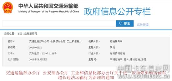 8月20日,**運輸部辦公廳、公安部辦公廳、工業和信息化部辦公廳聯合發布《關于進一步加強車輛運輸車超長違法運輸行為治...