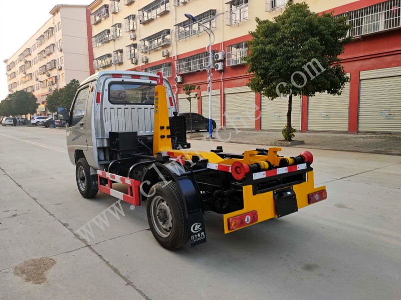勾臂垃圾車又稱車廂可卸式垃圾車、拉臂式垃圾車,該車廣泛適用與城市街道**垃圾處理,可一車配備多個斗,各個垃圾點放置多個垃圾斗,帶自卸功能,液壓操作,方便傾倒。該車的箱體部分完全由液壓系統來**,在平日里可將車載垃圾箱放置到各個垃圾收集站,待垃圾收集滿后,該車可直接開赴**垃圾站,通過液壓系統的操控,可將垃圾車后座上加裝的勾臂放下,掛住站內垃圾箱前端的連接點,將垃圾箱拉**車體的后座上,此時即可啟動車輛,將垃圾運送**垃圾處理站內,進行自卸式傾倒。該車主要的優點就是可一車配多斗,一輛車就可以維持數個垃圾收集站的運轉,效率高,且箱體為密封式設計,不會造成二次污染。
