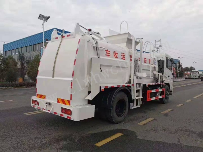 罐體采用4-5mm優(yōu)質碳鋼制作,方形罐體,罐體前后封頭采用圓弧蝶形封頭,配拉桿式提升機,可掛120/240升垃圾桶,罐體底部配雙缸液壓舉升自卸,罐體尾門液壓打開和鎖緊+手動鎖緊裝置,罐內設固液分離裝置,罐尾設液體自流閥,液位窗,后門液壓開啟,帶工具箱,洗手裝置。