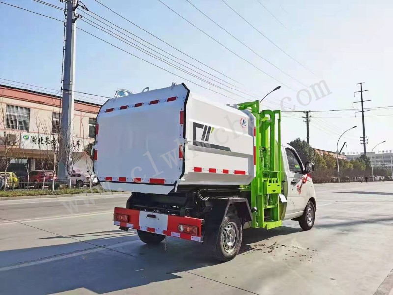 箱體采用3-4mm碳鋼板制作,箱體前部側(cè)面帶有掛桶提升機(jī)構(gòu),可自動舉升垃圾桶倒入垃圾,帶自卸功能,帶掛桶提升機(jī)翻蓋尾部裝有橡膠密封條,防污水滴漏,掛桶垃圾車可根據(jù)客戶要求搭配120升或240升塑料桶。