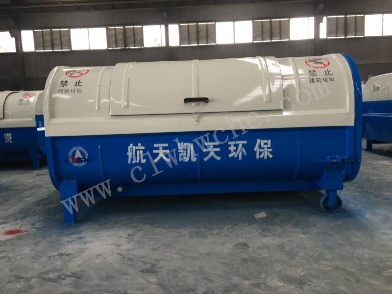 2、箱體兩側各設置1個投料口,還分別設置投料蓋,投料口的設置能**大限度滿足箱體容積使用率,減輕環衛工人工作強度;