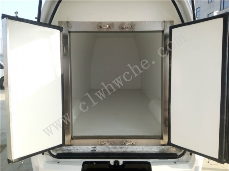 廂體內景6:醫療廢物轉運車專用全不銹鋼廂體材料,尾部設計兩道門,門中門。