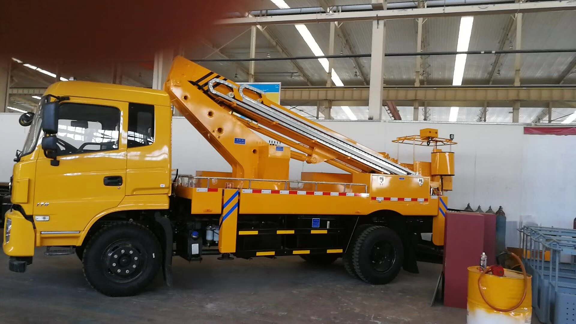 東風(fēng)天錦駕駛室,東風(fēng)康明斯ISB180馬力的發(fā)動(dòng)機(jī),軸距4700MM, 東風(fēng)6檔變速箱,4.5噸前橋,9噸后橋,國(guó)五排放,單排座原裝空調(diào),ABS,行車記錄儀,9.0R20鋼絲胎 五節(jié)八邊形伸縮臂,**大作業(yè)幅度15.6m;**大作業(yè)高度:28m;**大作業(yè)高度時(shí)的作業(yè)幅度5.3m,360°全回轉(zhuǎn)。H型支腿,支腿橫向跨距(mm)5370;縱向跨距(mm)4975;吊藍(lán)額定載荷≤200㎏。吊藍(lán)尺寸:1200x700X1150,靜液調(diào)平,帶油缸鎖止功能,車架和吊藍(lán)雙位操作,帶應(yīng)急動(dòng)力單元,