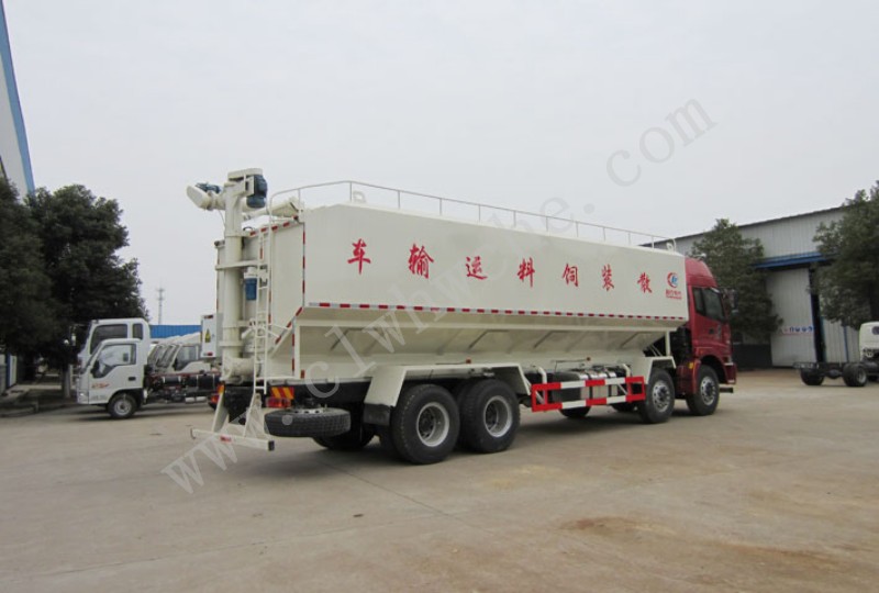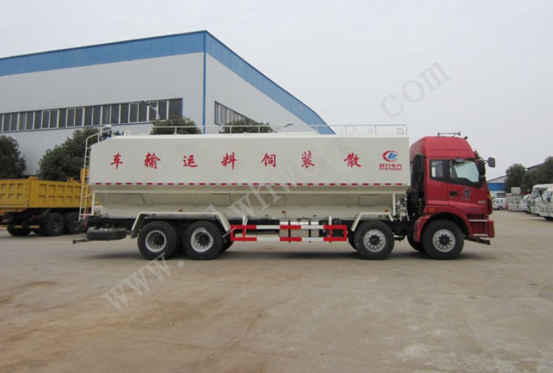 散裝飼料車,又名散裝飼料運輸車,飼料運輸車。結構簡單、性能可靠、輸送量大、操控方便、機動性強、對物料無污染等特點,廣泛應用于各大中小型養殖企業的飼料的運輸。