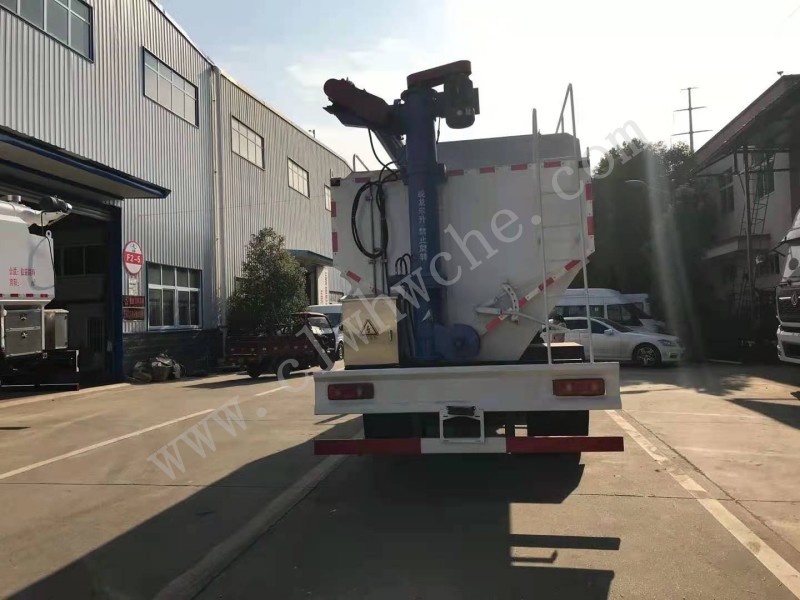 罐體材質(zhì)采用4mm優(yōu)質(zhì)碳鋼板,整車3條絞龍,由3個5.5KW電機帶動,頂部絞龍用液壓**舉升,可左右旋轉(zhuǎn)180°。罐體分3倉,可根據(jù)用戶要求做多個**分倉,可以****各分倉卸料順序和速度,全套德力西電氣。